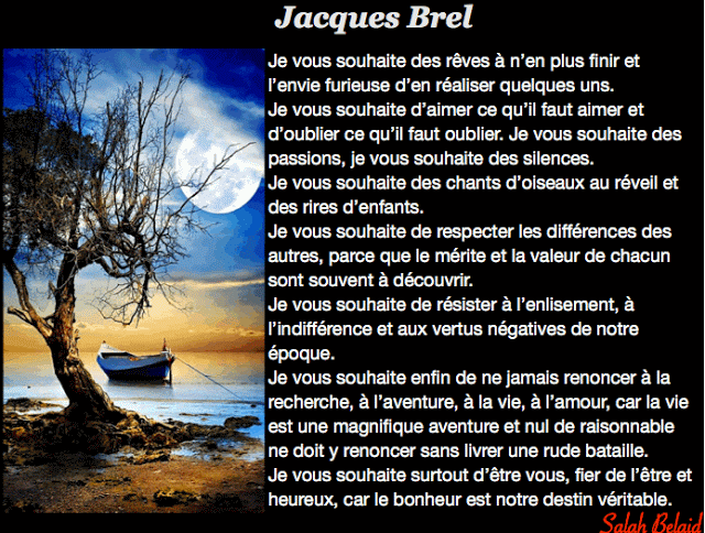 La lumière jaillira Reculant l’horizon La lumière jaillira Et portera ton nom. ,. ( Jacques BREL )
